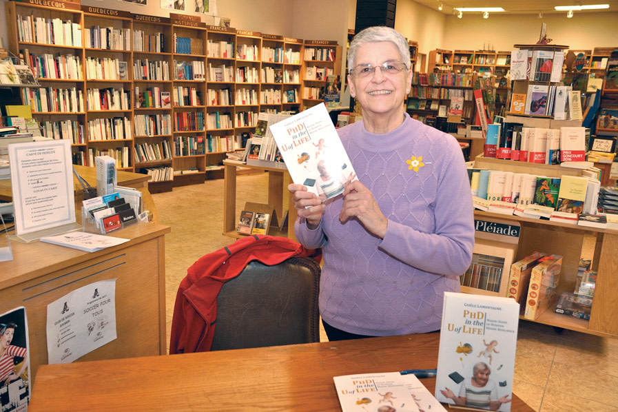 Gisele Lamontagne was signing her book at Michabou in Aylmer, April 1. Her new book is PhD in the U of Life. Ms Lamontagne is a therapist working with children and their families. She specialized in trauma and grief, moving into more generalized work. Before becoming a counsellor, she taught languages and was a freelance translator. She continues to write, translate, and run workshops. She renews herself from her high-energy schedule by going into nature and listening to the silence. She lives in Gatineau, Quebec.