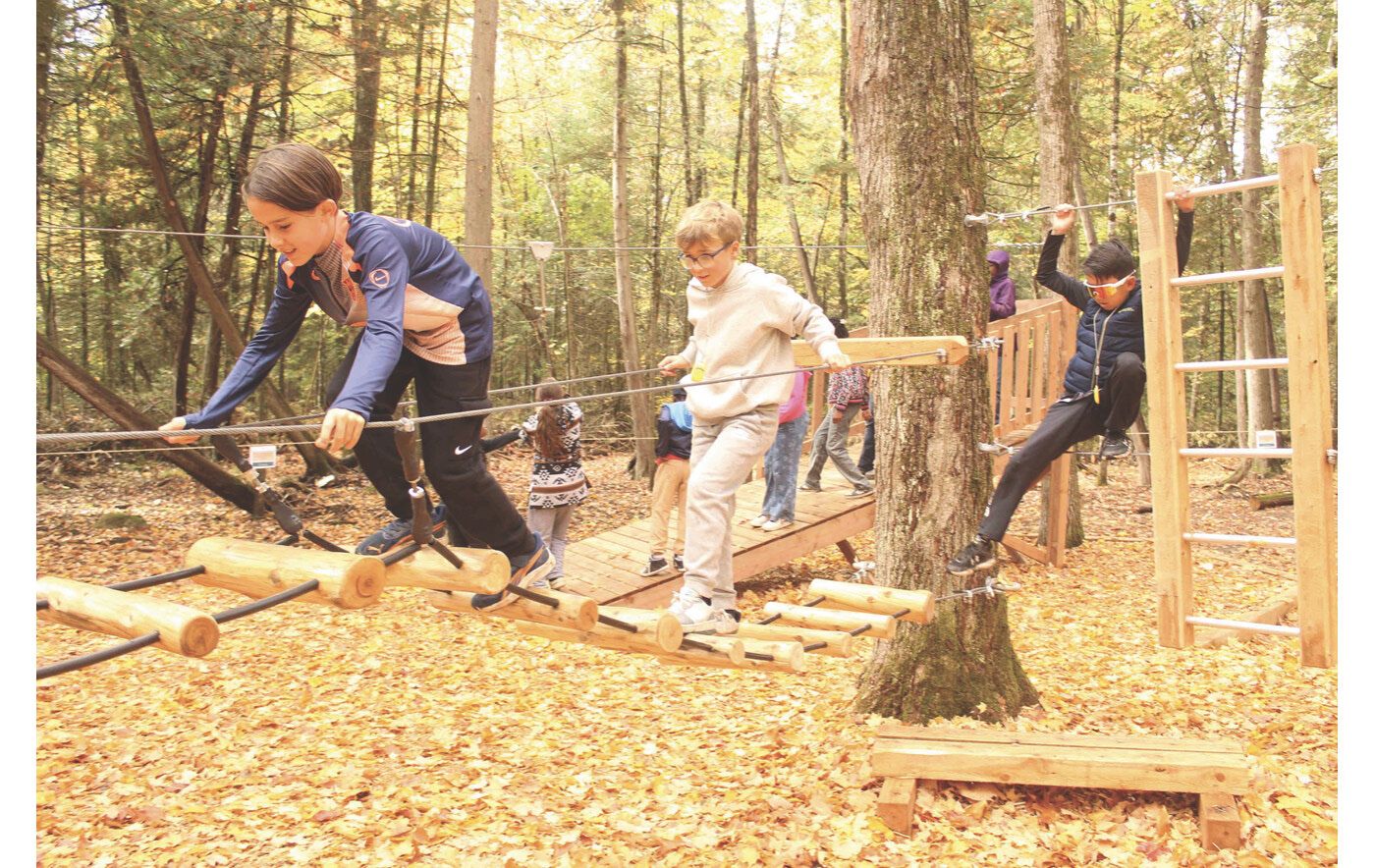 Boucher Forest Foundation unveiled a new obstacle course on Wednesday, October 8th. It is constructed with wood and has a beautiful design. The course is not only for children but also for adults, as it includes some challenging steps.