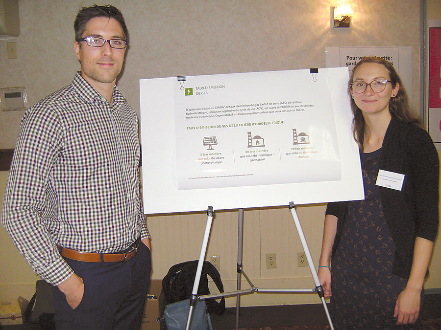 At an environment booth, Ariane Bouchard-Leroux and Frédéric Vigeant, consultants for Hydro-Quebec, answered questions on how climate change and the environment are important factors in water management dynamics.