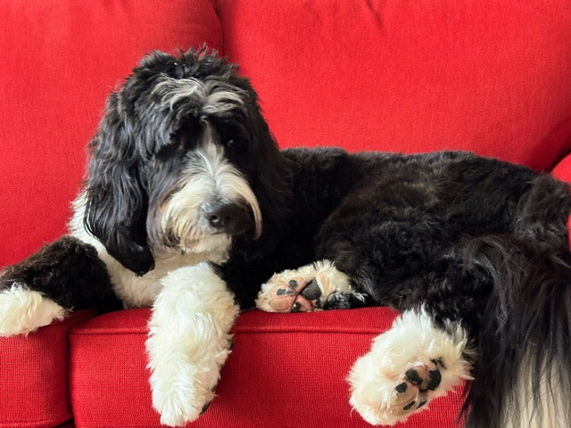 Photo 4 : Doudou, 4 ans, croisement bouvier bernois & caniche. Propriétaires : André & Linda