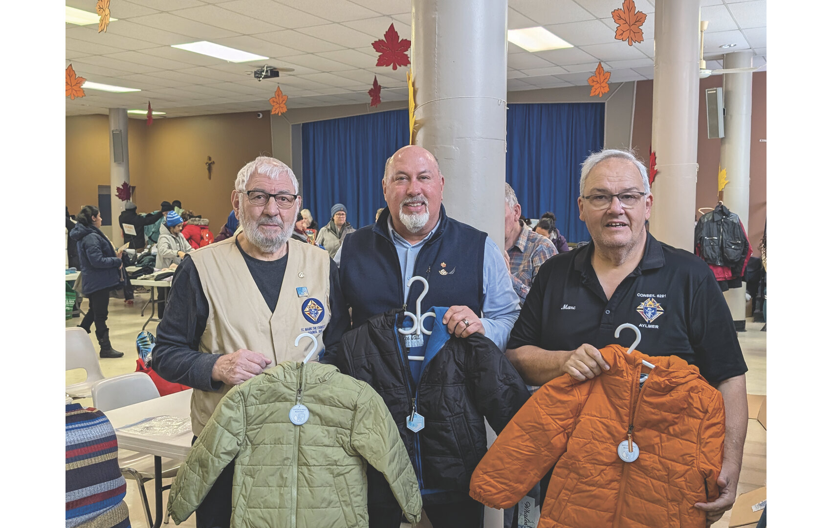 La collaboration entre les Conseils francophone et anglophone des Chevaliers de Colomb d'Aylmer a permis de donner à notre communauté locale plus de 100 manteaux d'hiver au cours des dernières semaines. C'est au-delà de 300 manteaux au cours des trois dernières années. La sélection des familles qui reçoivent des manteaux est assurée par la section d'Aylmer de la société St-Vincent-de-Paul.